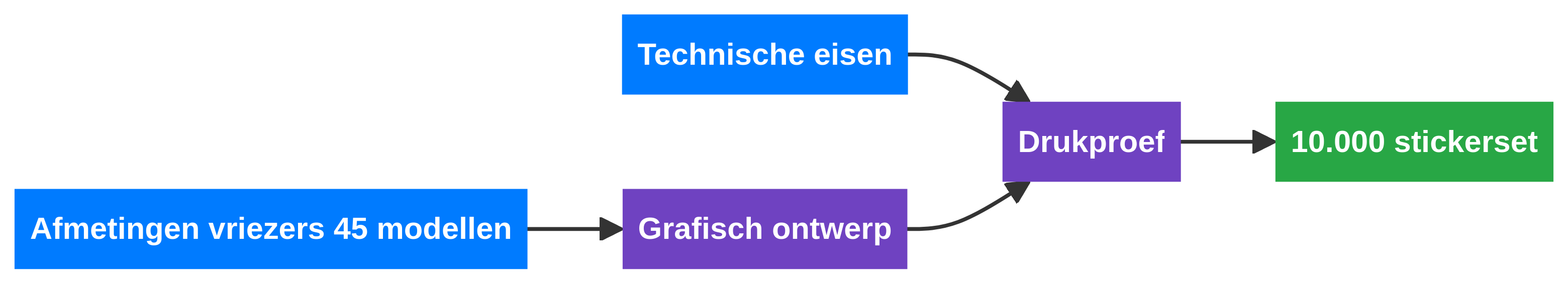 - Kwaliteitseisen: conform technische eisen, nieuwe visual identity guidelines, afmetingen vriezer